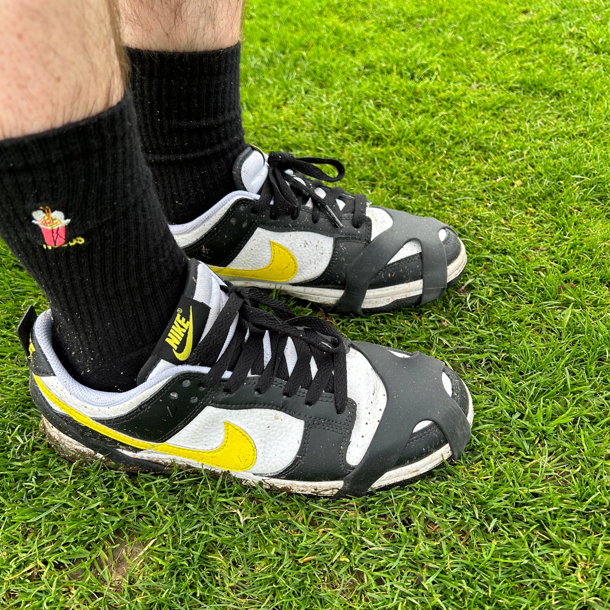 The Sole in One is an alternative to a golf shoe. It easily attaches-detaches to any shoe, transforming it for the golf course. Our product is size adaptable meaning it can stretch across four shoe sizes, whilst providing the necessary grip needed on the course. Its small storage size also allows you to travel with golf shoes wherever you go! All while allowing you to play in the comfort and style of your own trainers.